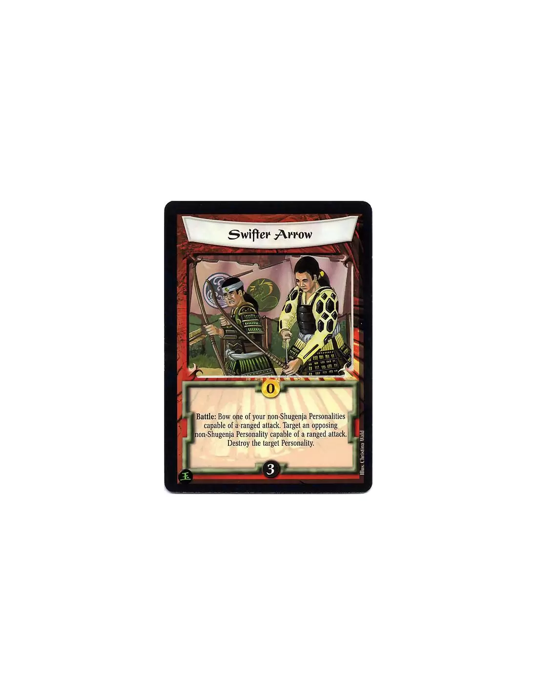 Battle: Bow one of your non-Shugenja Personalities capable of a ranged attack. Target an opposing non-Shugenja Personality capable of a ranged attack. Destroy the target Personality.