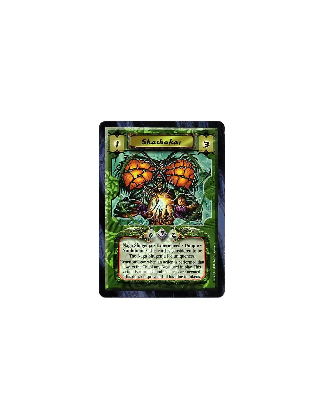 Experienced Naga Shugenja. Unique Reaction: Bow Shashakar when an action is performed that lowers the Chi of any Naga card in play. The action is cancelled and its effects are negated. This does not prevent Chi loss due to tokens.
