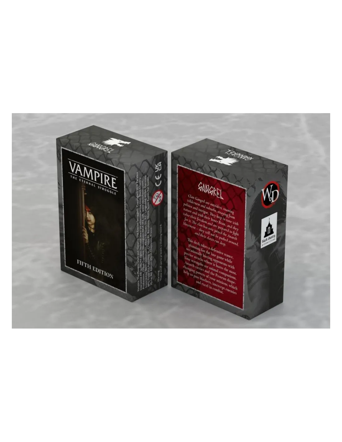 This is a deck with 77 library cards and 12 crypt cards, ready for play out of the box or customizable with other Vampire: The Eternal Struggle cards. Each player needs a deck to play.