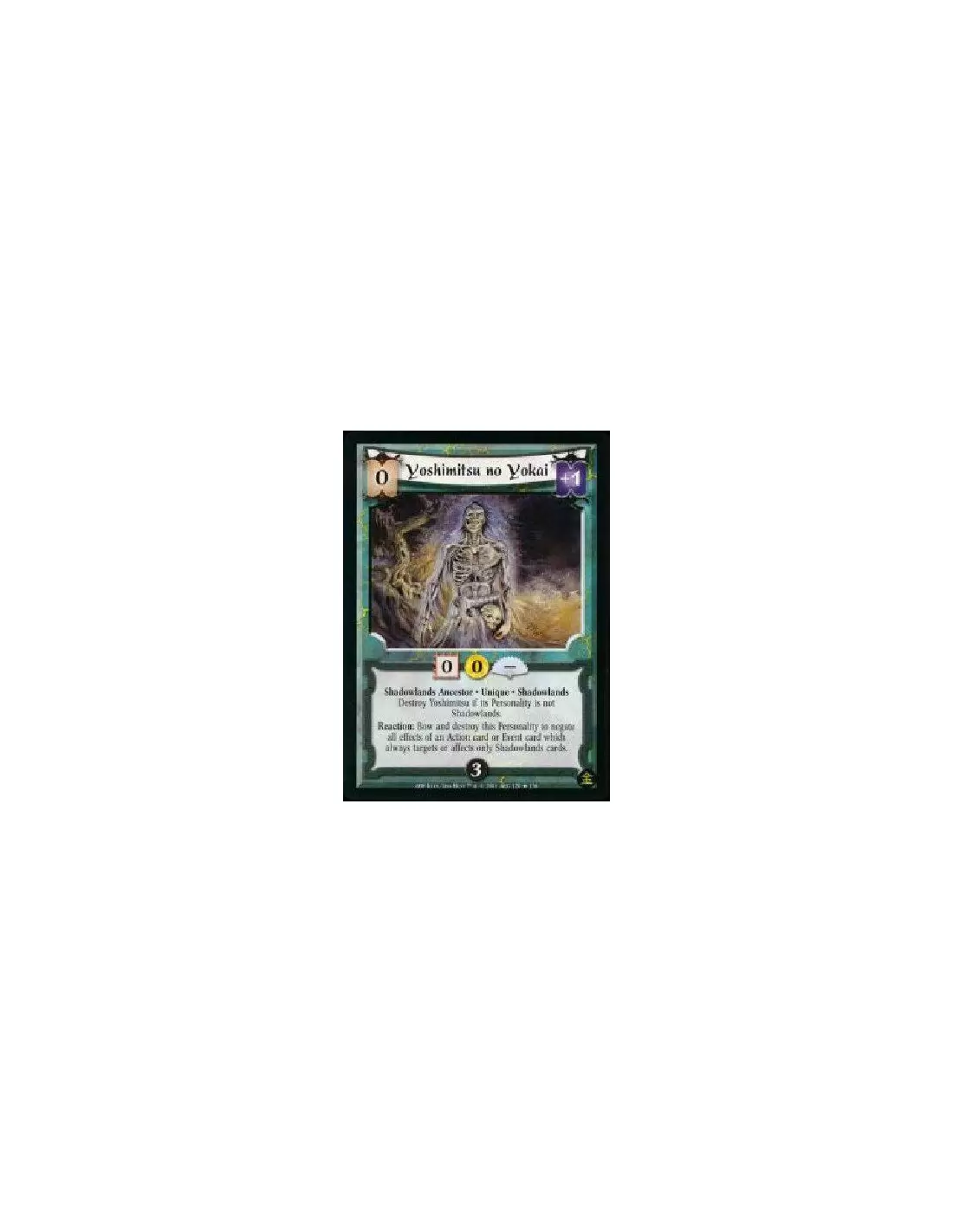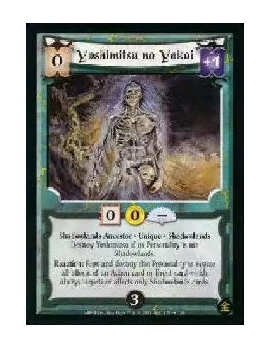 Shadowlands Ancestor * Unique * Shadowlands Destroy Yoshimitsu if its Personality is not Shadowlands. Reaction: Bow and destroy this Personality to negate all effects of an Action card or Event card which always targets or affects only Shadowlands cards.