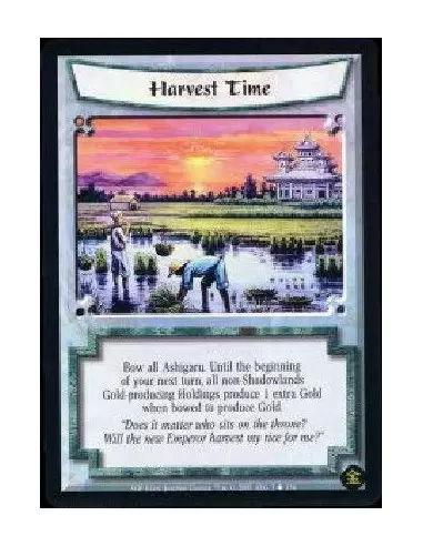 Bow all Ashigaru. Until the beginning of your next turn, all non-Shadowlands Gold-producing Holdings produce 1 extra Gold when bowed to produce Gold.