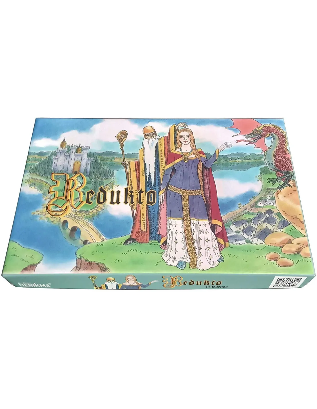 REDUKTO, la leyenda: Juego de mesa (donde el azar y la estrategia se combinan) de 2 a 6 jugadores, cuyo objetivo consiste en reunir 5 cartas del mismo número y llegar al castillo de la Isla Redukto con 2 peones que avanzan por las celdas del camino en el tablero en sentido inverso al horario.