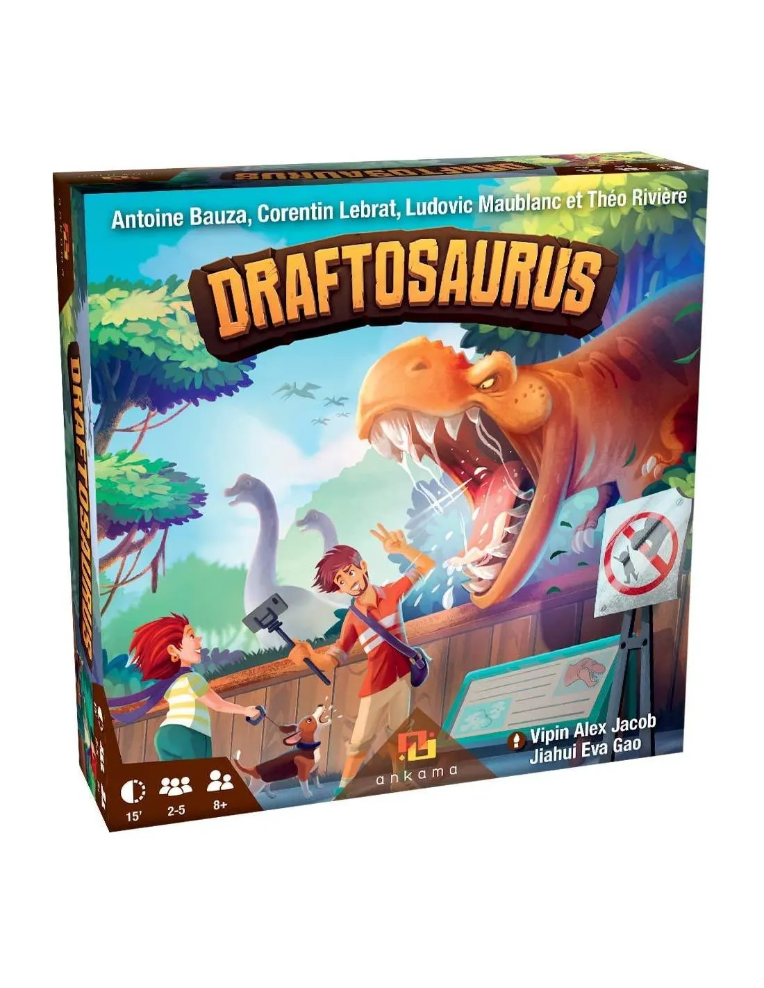 Draftosaurus es un juego de mesa en el que tendremos que crear el parque temático de dinosaurios con más posibilidades de atraer visitantes. Para ello, sacaremos dinos de la bolsa, y según lo que dictamine un dado, tendremos que ubicarlos en nuestro tablero. Rápido , sencillo, y Jurásico.