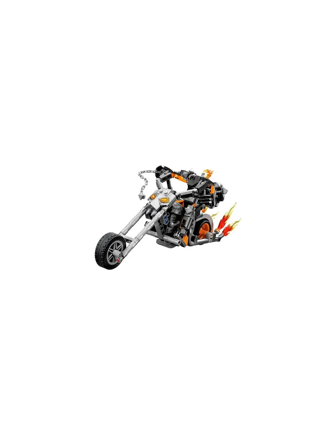 Un emblemático personaje: Incluye una minifigura del Motorista Fantasma, un meca construible para él, con brazos, piernas y dedos totalmente articulados, y una moto de gran tamaño con asiento para el meca