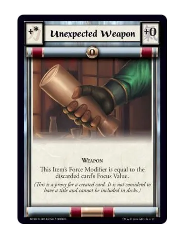 Unexpected Weapon  - WeaponThis Item's Force Modifier is equal to the discarded card's Focus Value.