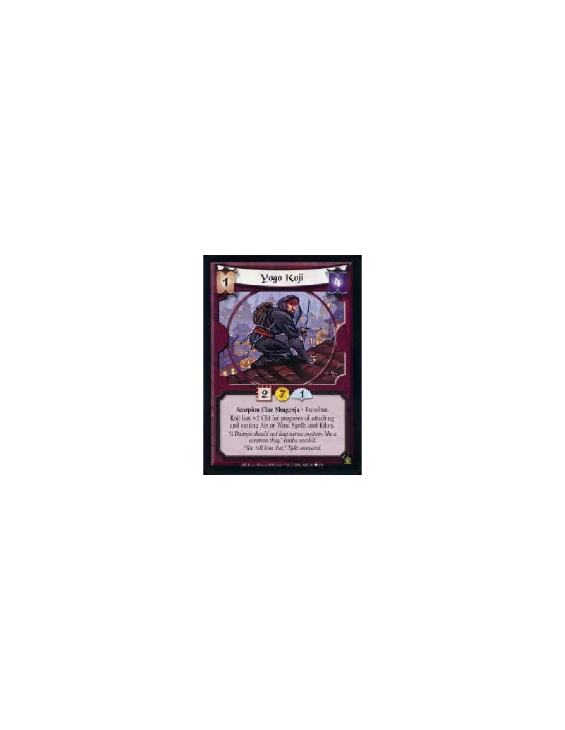 Scorpion Clan Shugenja * Kuroiban Koji has +2C for purposes of attaching and casting Air or Wind spells and Kihos.