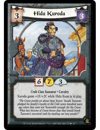 Crab Clan Samurai. Cavalry Kuroda gains +1/+2 while Hida Kuon is in play.