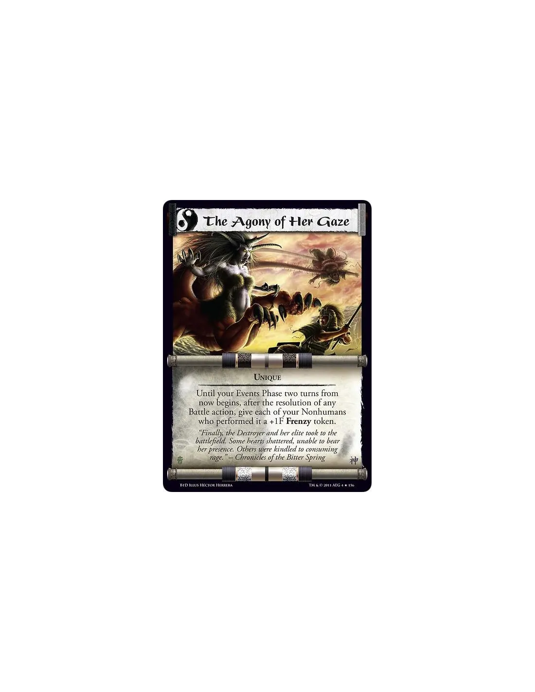 Until your Events Phase two turns from now begins, after the resolution of any Battle action, give each of your Nonhumans who performed it a +1F Frenzy token.