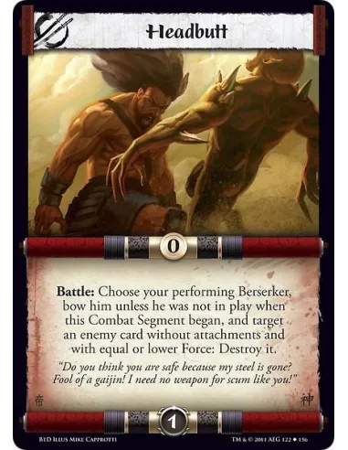 Battle: Choose your performing Berserker, bow him unless he was not in play when this Combat Segment began, and target an enemy card without attachments and with equal or lower Force: Destroy it.