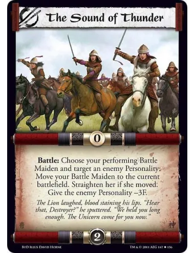 Battle: Choose your performing Battle Maiden and target an enemy Personality: Move your Battle Maiden to the current battlefield. Straighten her if she moved. Give the enemy Personality –3F.