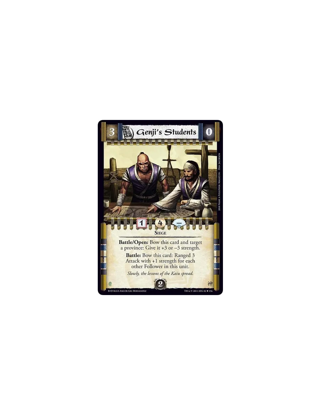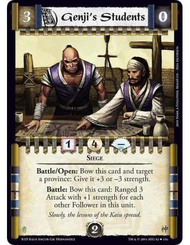 Battle/Open: Bow this card and target a province: Give it +3 or –3 strength.Battle: Bow this card: Ranged 3 Attack with +1 strength for each other Follower in this unit.
