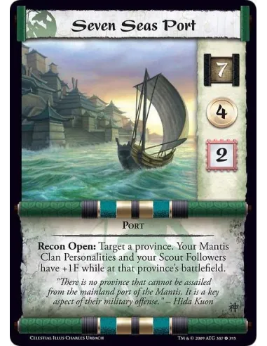 Port Recon Open: Target a province. Your Mantis Clan Personalities and your Scout Followers have +1F while at that province’s battlefield.