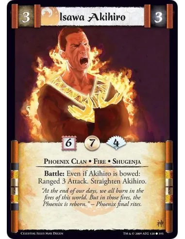 Phoenix Clan • Fire • Shugenja Battle: Even if Akihiro is bowed: Ranged 3 Attack. Straighten Akihiro