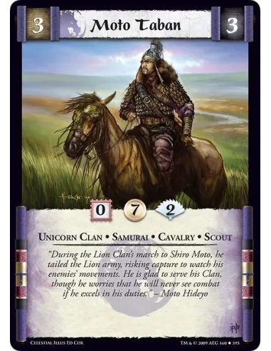 “During the Lion Clan’s march to Shiro Moto, he tailed the Lion army, risking capture to watch his enemies’ movements. He is glad to serve his Clan, though he worries that he will never see combat if he excels in his duties.” – Moto Hideyo