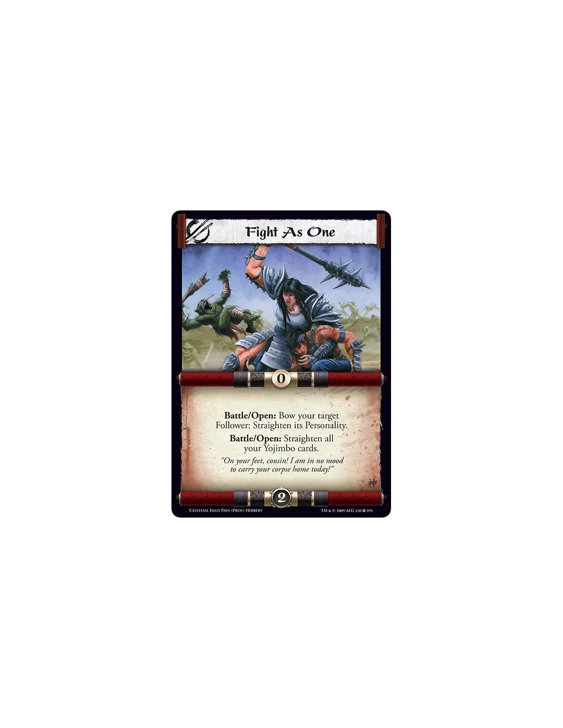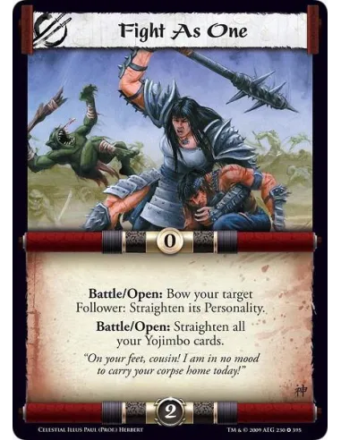 Battle/Open: Bow your target Follower: Straighten its Personality. Battle/Open: Straighten all your Yojimbo cards.