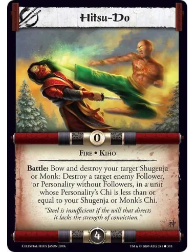 Fire • Kiho Battle: Bow and destroy your target Shugenja or Monk: Destroy a target enemy Follower, or Personality without Followers, in a unit whose Personality’s Chi is less than or equal to your Shugenja or Monk’s Chi.