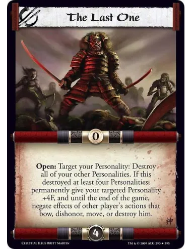 Open: Target your Personality: Destroy all of your other Personalities. If this destroyed at least four Personalities, permanently give your targeted Personality +4F, and until the end of the game, negate effects of other player's actions that bow, dishonor, move, or destroy him.