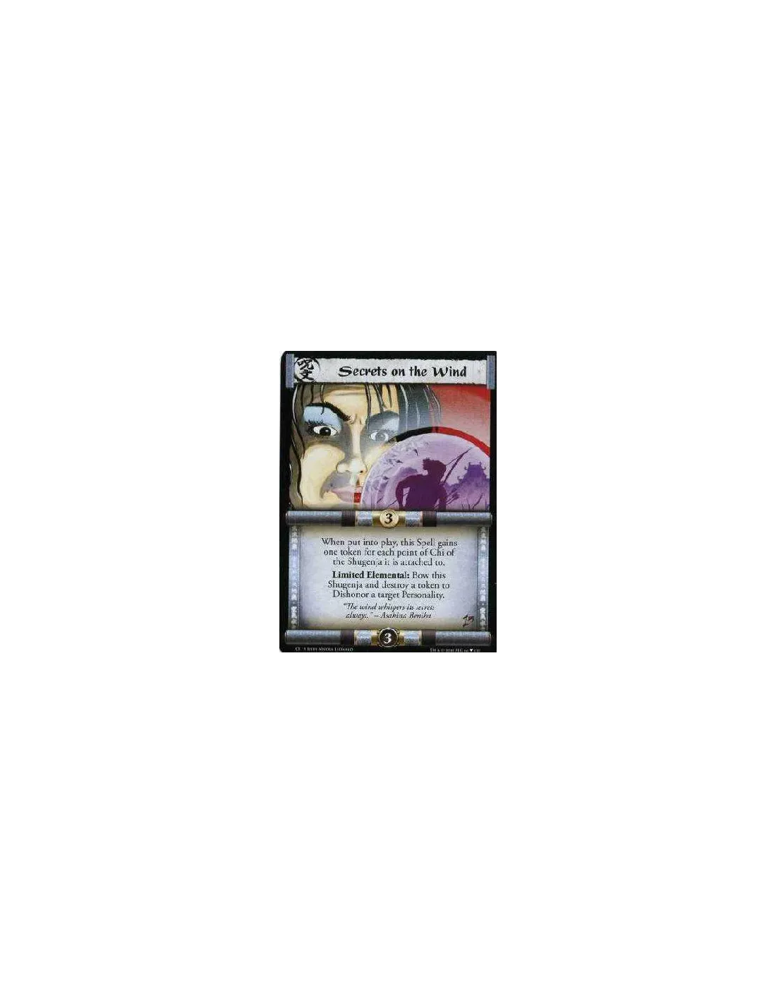 When put in play, this spell gains one token for each point of Chi of the Shugenja it is attached to. Limited Elemental: Bow this Shugenja and destroy a token to dishonor a target Personality.