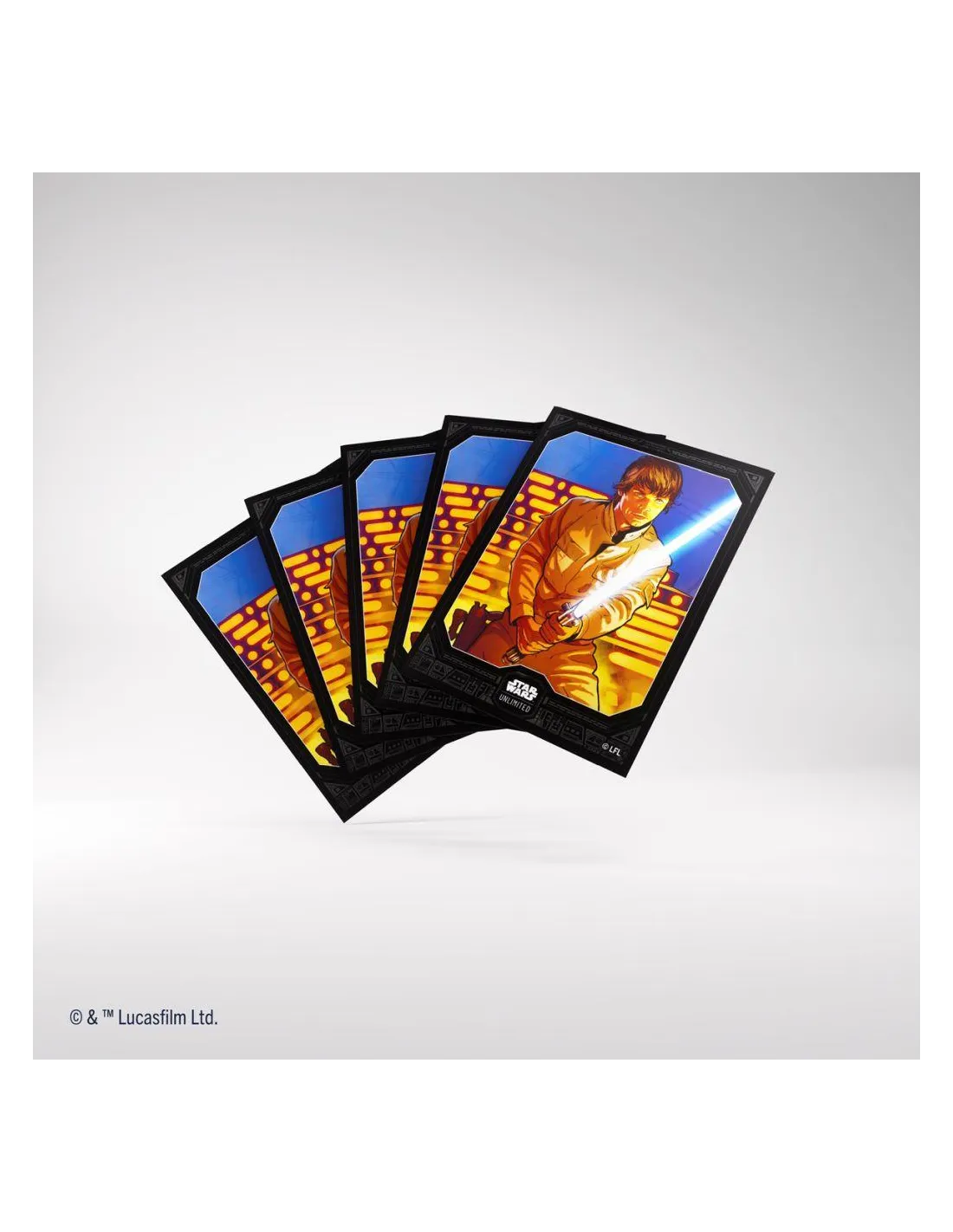 Estas fundas de Star Wars™ de primera calidad, impresas a todo color y de tamaño estándar: Unlimited Master Art Sleeves son un accesorio imprescindible para todos los fans de la franquicia. La textura mate del reverso, combinada con la transparencia del anverso, garantiza una excelente experiencia táctil y una increíble sensación de barajado.