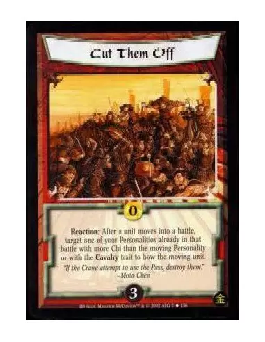 Reaction: After a unit moves into a battle, target one of your Personalities already in that battle with more Chi than the moving Personality or with the Cavalry trait to bow the moving unit.