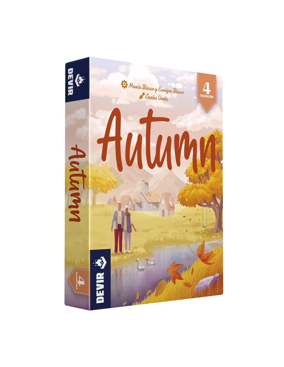 Llega el otoño y el paisaje se tiñe de naranjas y ocres. Poco a poco los árboles van perdiendo sus hojas, que caen sobre el suelo formando alfombras de color. Tú y tu acompañante podríais recoger las hojas del jardín, pero antes se os ocurre algo más divertido: elegiréis un tipo de hoja y tras algunos movimientos con el rastrillo, ganará quien sea capaz de crear el área más grande con su grupo. ¿Empezamos? Diseñado por María Blasco y Enrique Blasco (aunque estos dos hermanos también son conocidos como Brote de juegos) e ilustrado por Carlos Ureta, Autumn es un juego de la saga 4 seasons que se suma a la colección pocket de Devir. Si ya conocéis Winter, título de los mismos autores y que también forma parte de la saga, este juego os resultará muy familiar. Con solo 18 cartas que muestran cuatro grupos de hojas de dos colores distintos, Autumn permite partidas rápidas a 2 jugadores o en solitario, a partir de 8 años. Si os da pereza leer y aprender reglas, no sufriréis con este juego ya que hay que recordar muy pocas normas. Para empezar, barajad todas las cartas y situadlas formando un mazo con las hojas ocultas. Revelad la primera carta y colocadla sobre la mesa. El jugador inicial (elegido al azar) revela otra carta y la juega sobre la primera. El segundo jugador, antes de iniciar el turno, elige el color de hojas con el que jugará cada uno: rojo o amarillo. Tras esta decisión, dicho jugador revela una nueva carta, la juega y pasa turno. El juego continúa normalmente alternando ambos jugadores hasta agotar el mazo de cartas. La norma más importante que hay que recordar es que las cartas se juegan siempre sobre las otras de la mesa, en el mismo sentido: es posible rotarla 180 grados, pero no 90. Al colocar la carta hay que cubrir uno o dos espacios de hojas, ni más ni menos. Los espacios que se solapen pueden ser de cualquier color, no tienen por qué coincidir. Una vez colocadas todas las cartas, quien posea el área más grande de espacios de hojas de su color conectados ganará la partida. Los espacios de hojas solo se consideran conectados si se encuentran ortogonalmente adyacentes; es decir, en contacto por los lados, no por las esquinas (los espacios en diagonal no se consideran conectados). De todos modos, ¡el ganador todavía no puede celebrar la victoria! Autumn está diseñado para jugar partidas de tres rondas. Tras finalizar la tercera, sumad y comparad el número de espacios que consigue cada jugador para ver quién es el ganador. Por otro lado, el modo solitario nos propone tres retos distintos: jardín, equilibrio y dos. En este modo de juego, la partida se desarrolla jugando con ambos colores a la vez, tratando también de crear áreas con espacios de hojas del mismo color. Dependiendo del desafío elegido, puntuaremos de una manera u otra. En el reto Jardín se escogen al final las tres áreas que contengan más hojas (sean del color que sean) y se cuentan cuantos espacios hay en cada uno. La puntuación para esa partida es el menor de estos tres números. En el desafío Equilibrio, deberás conseguir tres áreas exactamente iguales, con el mismo número de espacios en cada una. Y por último, en el reto Dos, tratarás de conseguir solo dos áreas, sin que haya espacios de colores sin conectar fuera de alguna de esas dos áreas. Autumn es el compañero perfecto para cualquier viaje. Con muy pocos componentes, ofrece un desafío muy entretenido tanto para jugar en pareja como para hacerlo en solitario. ¡El pique está asegurado! La colección pocket, además, se caracteriza por su coste reducido, al alcance de todos los bolsillos. ¡Déjate atrapar por los colores del otoño y ponte a jugar con las hojas!