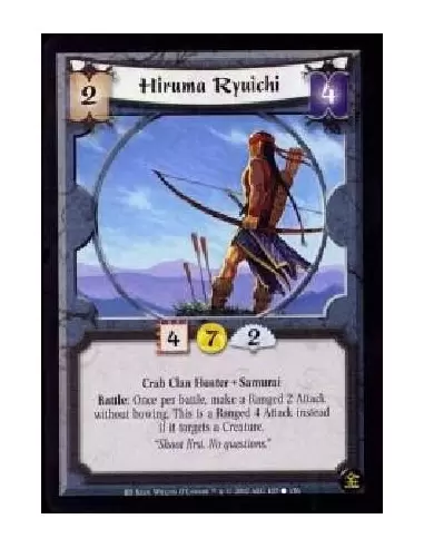 Crab Clan Hunter. Samurai Battle: Once per battle, make a Ranged 2 Attack without bowing. This is a Ranged 4 Attack instead if it targets a creature.