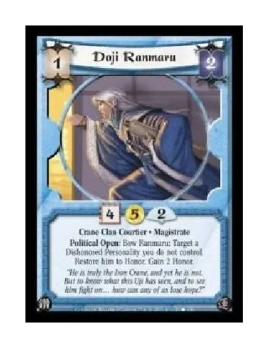 Crane Clan Courtier · Magistrate. Political Open: Bow Ranmaru: Target a Dishonored Personality you do not control. Restore him to Honor. Gain 2 Honor.
