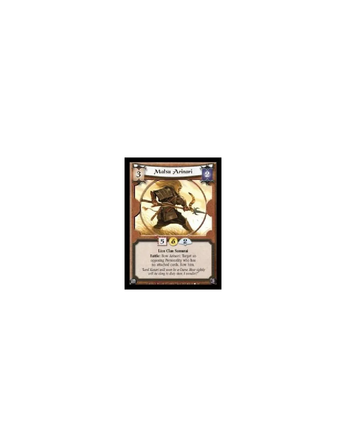 Lion Clan Samurai. Battle: Bow Arinori: Target an opposing Personality who has no attached cards. Bow him.