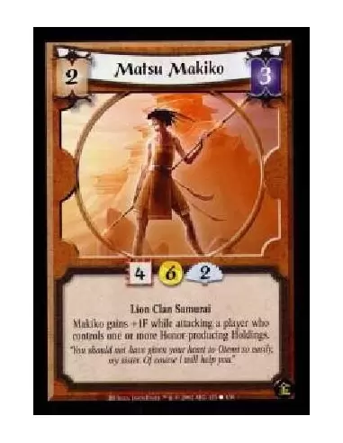 Lion Clan Samurai Makiko gains +1F while attacking a player who controls one or more Honor-producing Holdings.