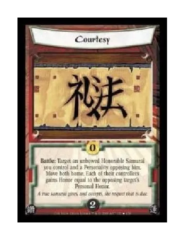 Battle: Target an unbowed Honorable Samurai you control and a Personality opposing him. Move both home. Each of their controllers gains Honor equal to the opposing target's Personal Honor