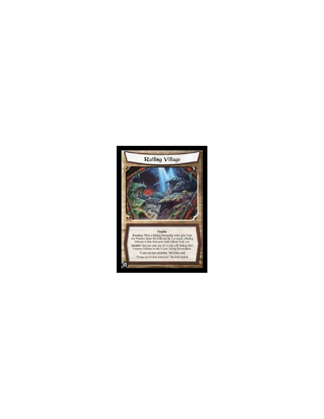 Singular Reaction: When a Ratling Personality enters play from this Province, lower his Gold cost by 2 or attach a Ratling Follower to him from your hand without Gold cost. Limited: Once per turn, pay 1G to add a 0F Ratling Pack Creature Follower to one of your Ratling Personalities.