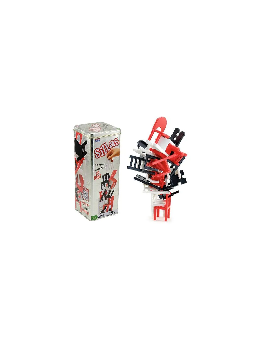 Juego de las sillas. Juego para 1 o más jugadores en el que gana aquel al que menos sillas se le caigan cuando finalice el número predeterminado de rondas. Si derribas las sillas estás fuera del juego. Contiene 8 sillas rojas, 8 negras y 8 blancas. Producto licenciado y 100% original. Te ofrecemos productos exclusivos y con una calidad excepcional.