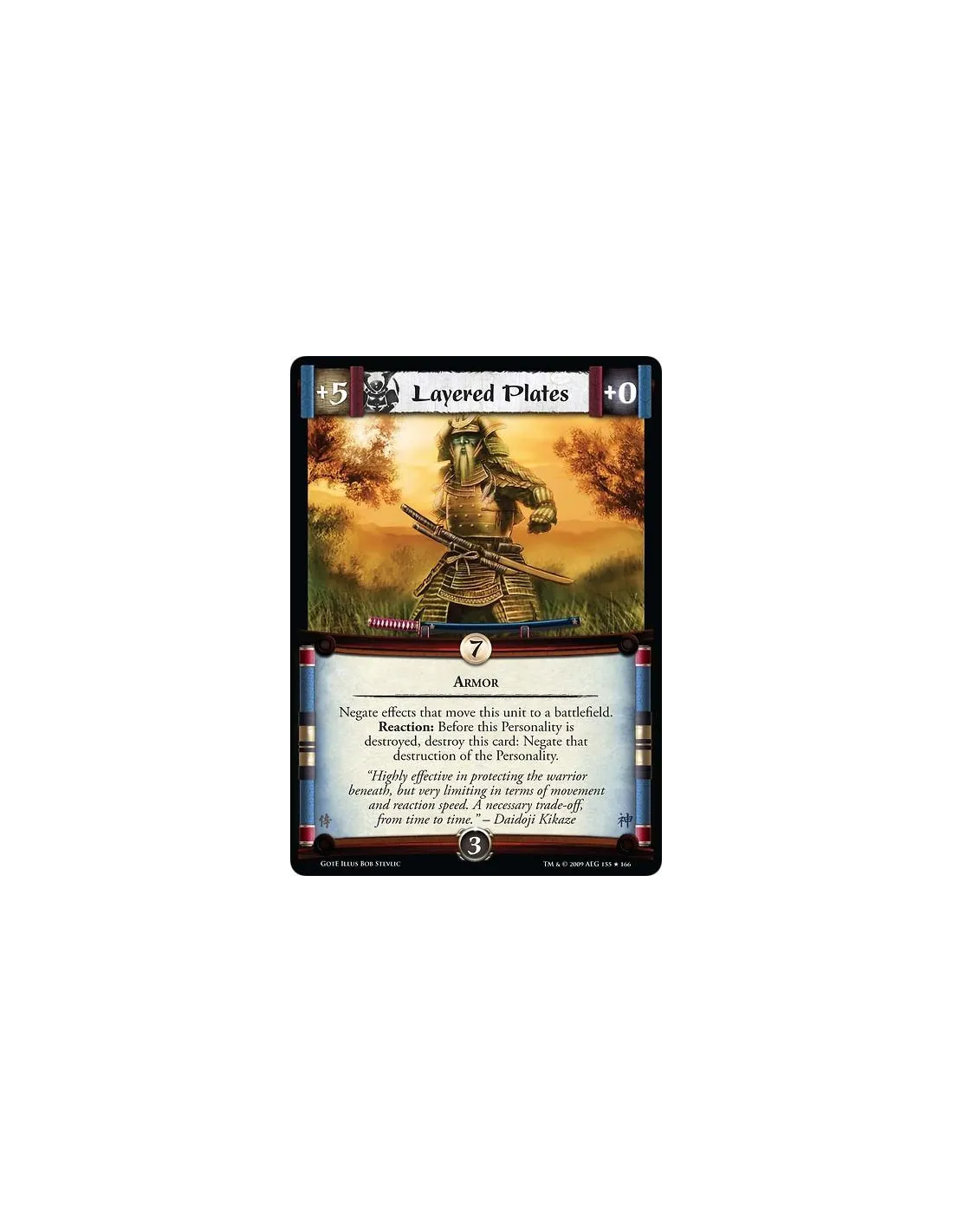 “Highly effective in protecting the warrior beneath, but very limiting in terms of movement and reaction speed. A necessary trade-off, from time to time.” – Daidoji Kikaze
