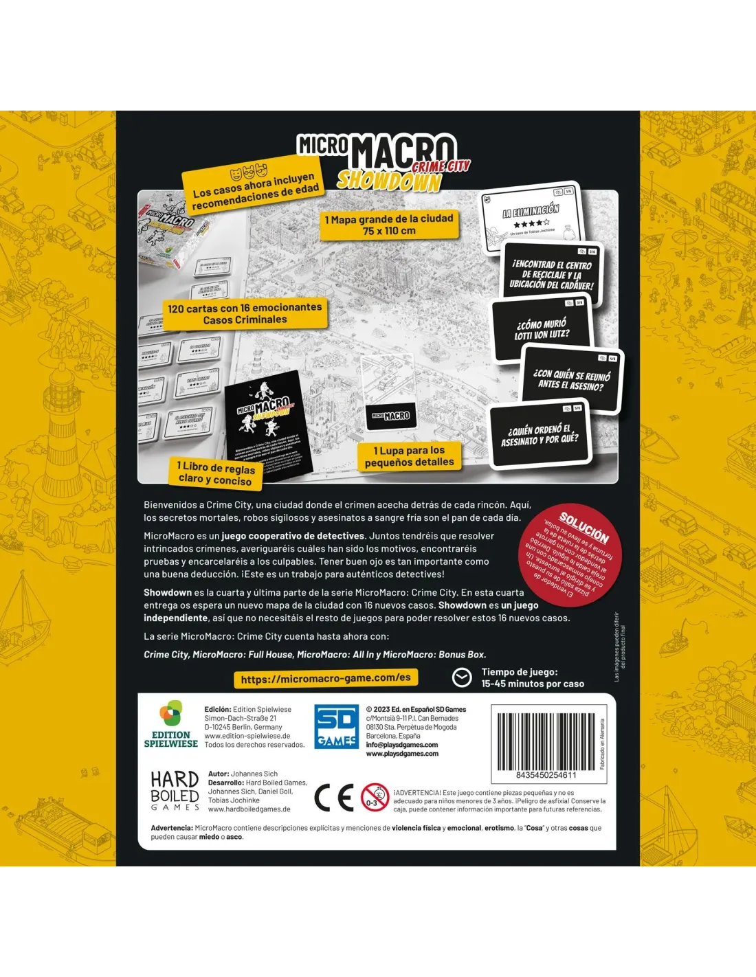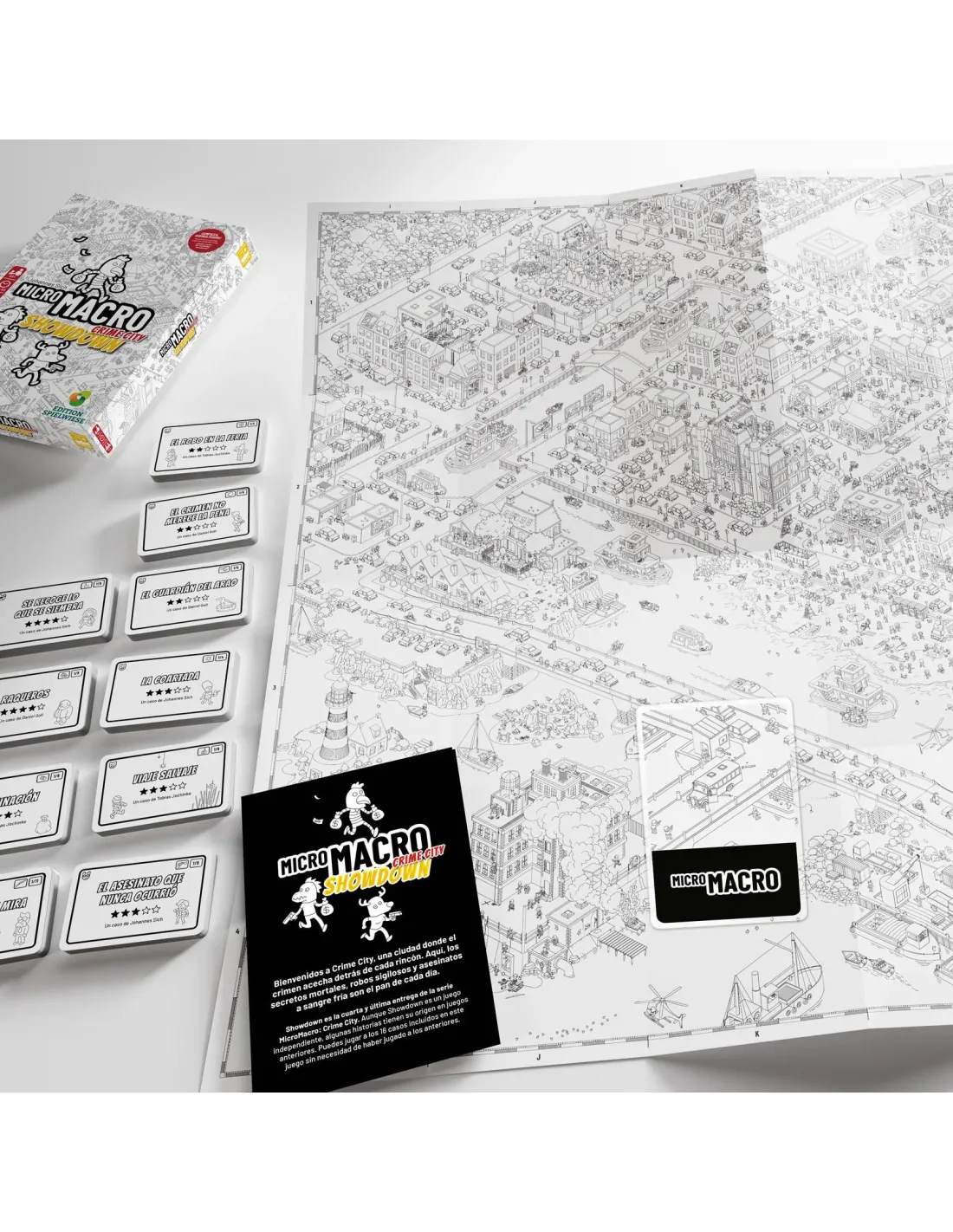 MicroMacro es un juego cooperativo de detectives. Juntos resolveréis intrincados casos criminales, averiguaréis cuáles han sido los motivos, encontraréis pruebas y encarcelaréis a los culpables. Un ojo perspicaz es igual de importante que una deducción ingeniosa. ¡Este es un trabajo para verdaderos detectives!!