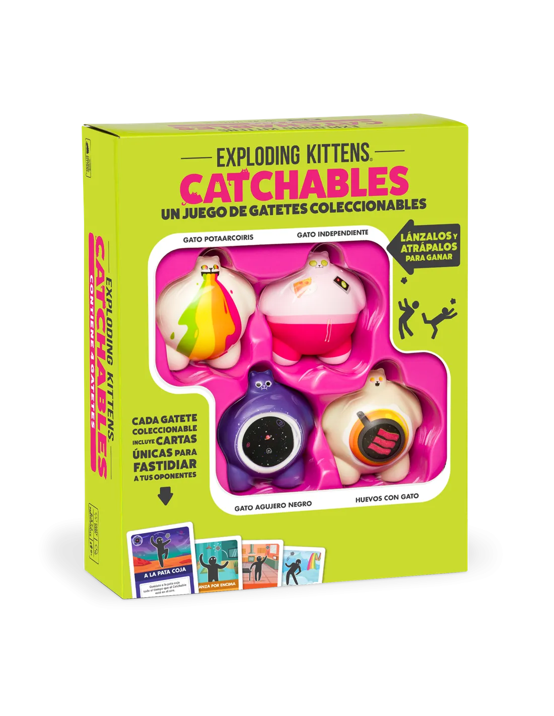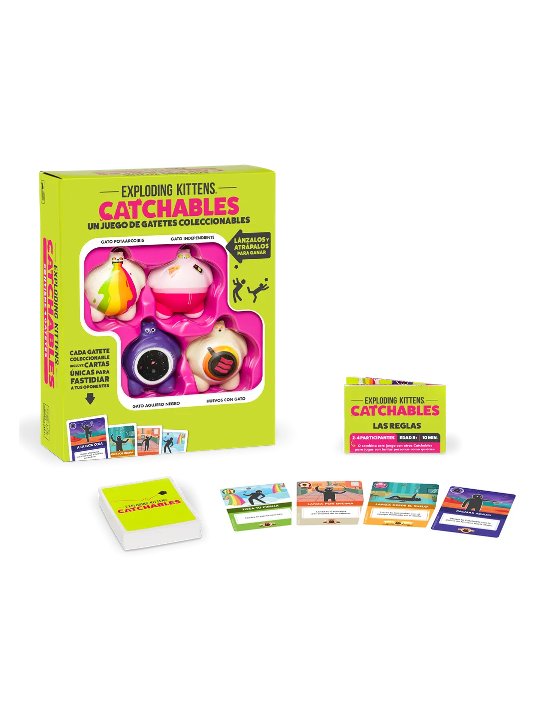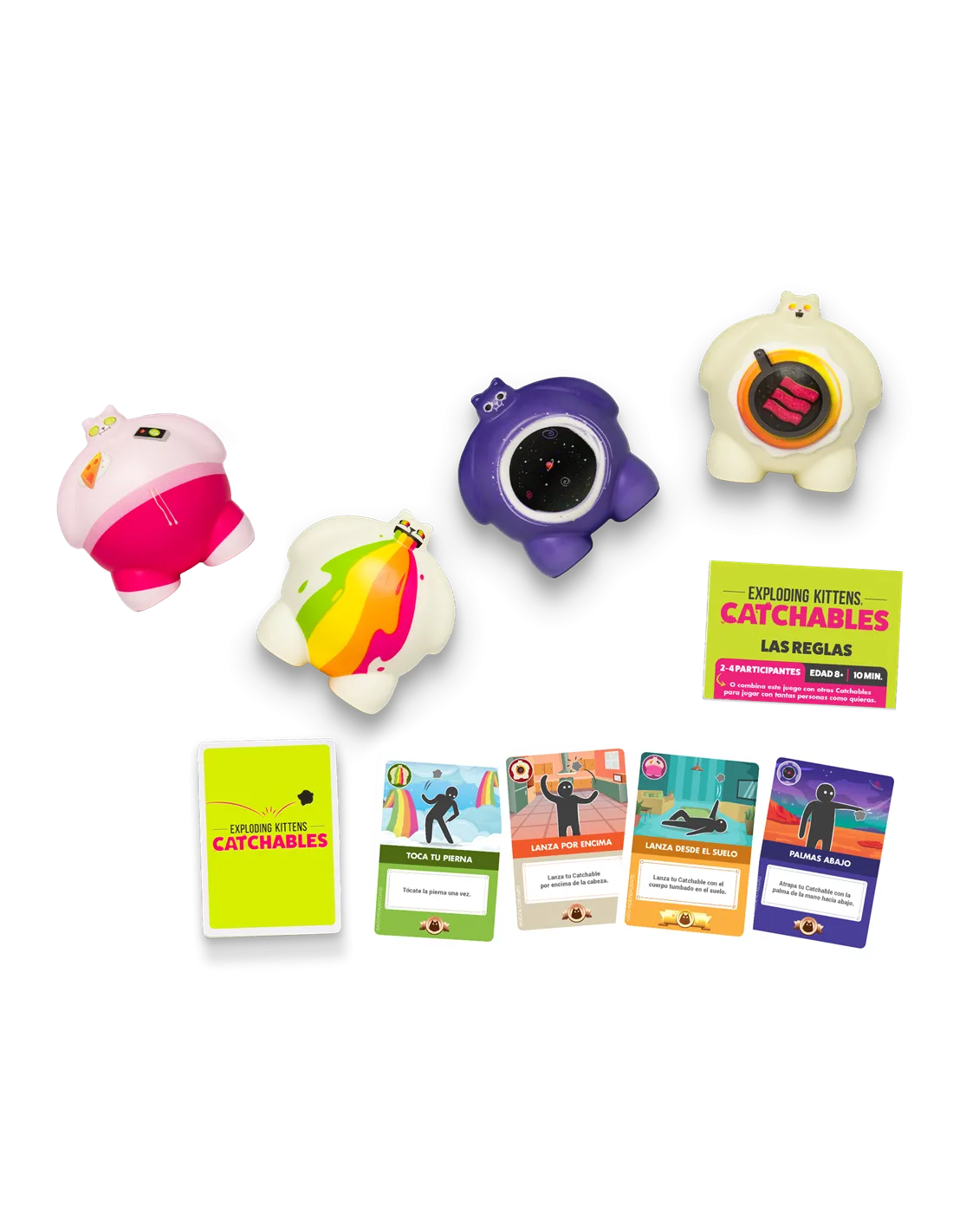 4 Catchables esponjosos, 48 cartas y 1 reglamento.