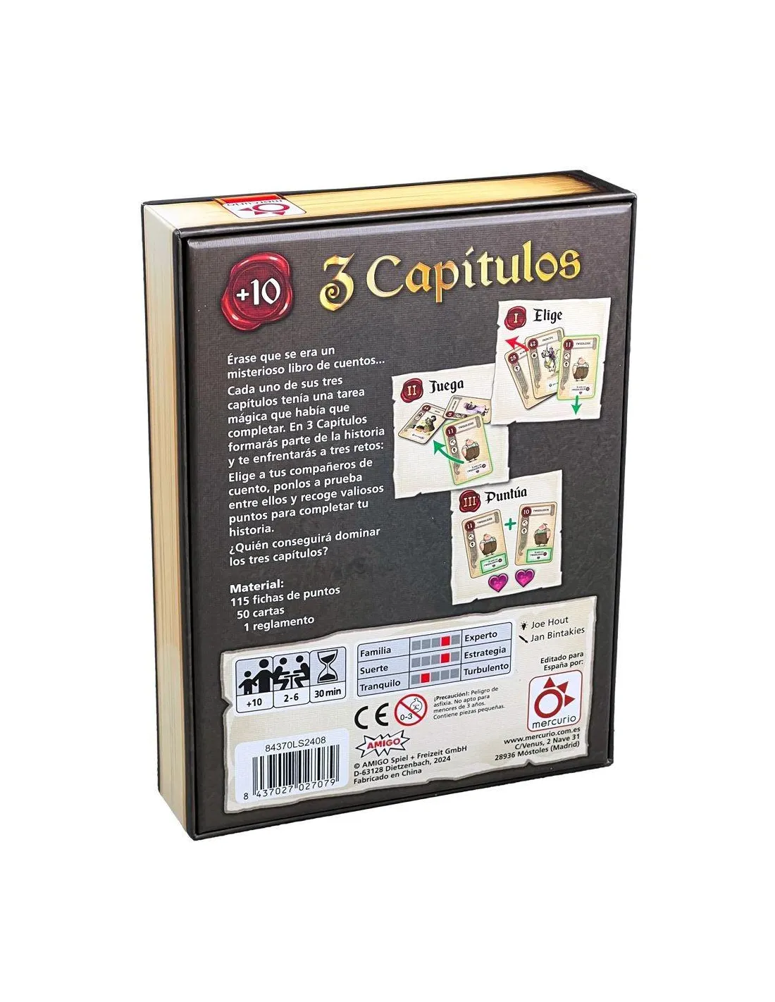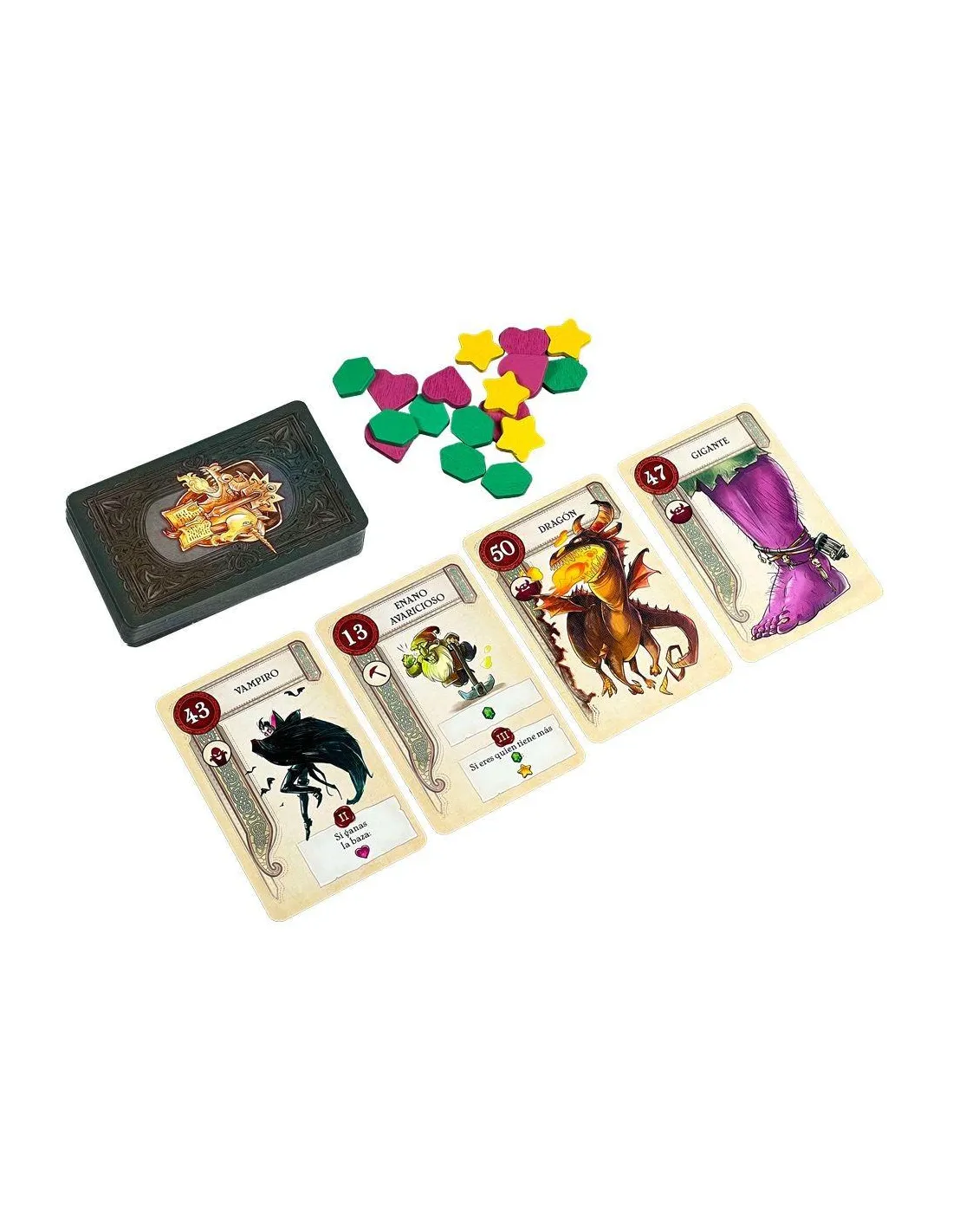 9Descubre un emocionante juego de mesa dividido en tres capítulos donde los personajes de cuentos y leyendas cobran vida. Primero, selecciona estratégicamente tus cartas en un “draft” inicial. Luego, compite para ganar bazas aprovechando las habilidades únicas de los personajes y acumulando puntos. Finalmente, calcula tu puntuación y busca obtener puntos extra con increíbles “combos”. ¡Un juego lleno de magia, estrategia y diversión para toda la familia! Perfecto para los amantes de los cuentos y los juegos de cartas. ¡Haz que cada partida sea un cuento inolvidable!
