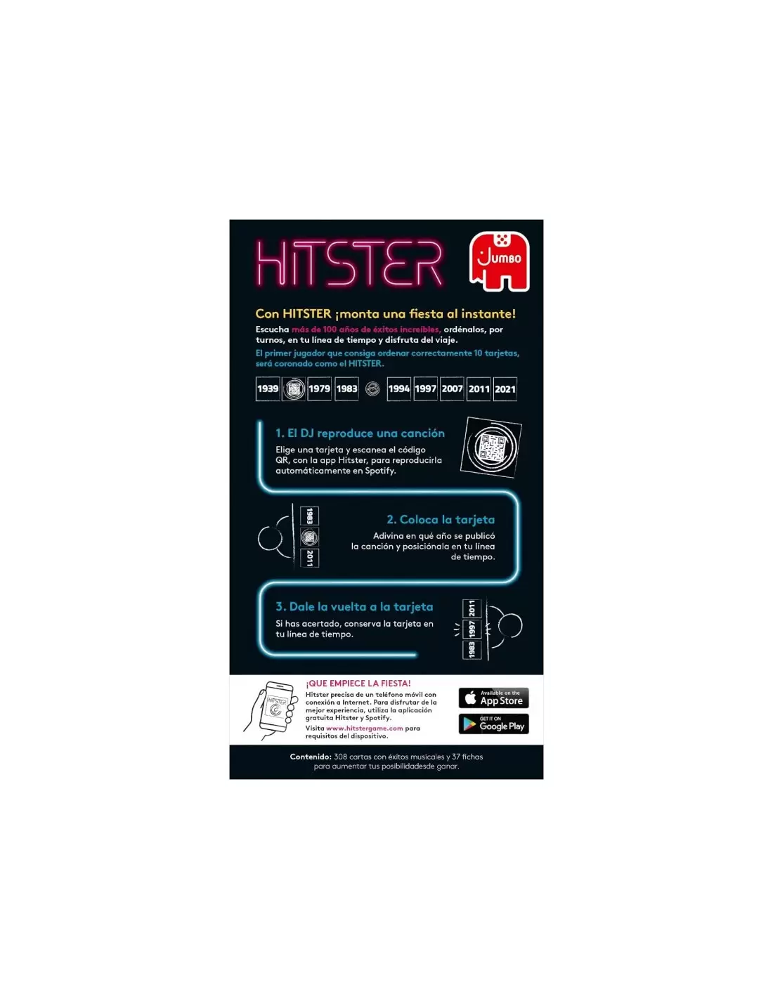 HITSTER es un juego de mesa para jugar con tus amigos o con tu familia y compartir divertidos momentos. Para empezar a jugar, descárgate la App gratuita de Hitster disponible en App Store y en Google Play.
