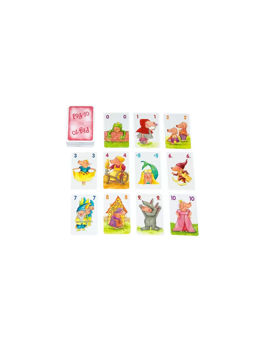 Los 10 Cerditos es un juego de cartas para niños en donde todo gira en torno al número 10, siendo el jugador que llegue más veces al 10 con sus cartas el que gane la partida.
