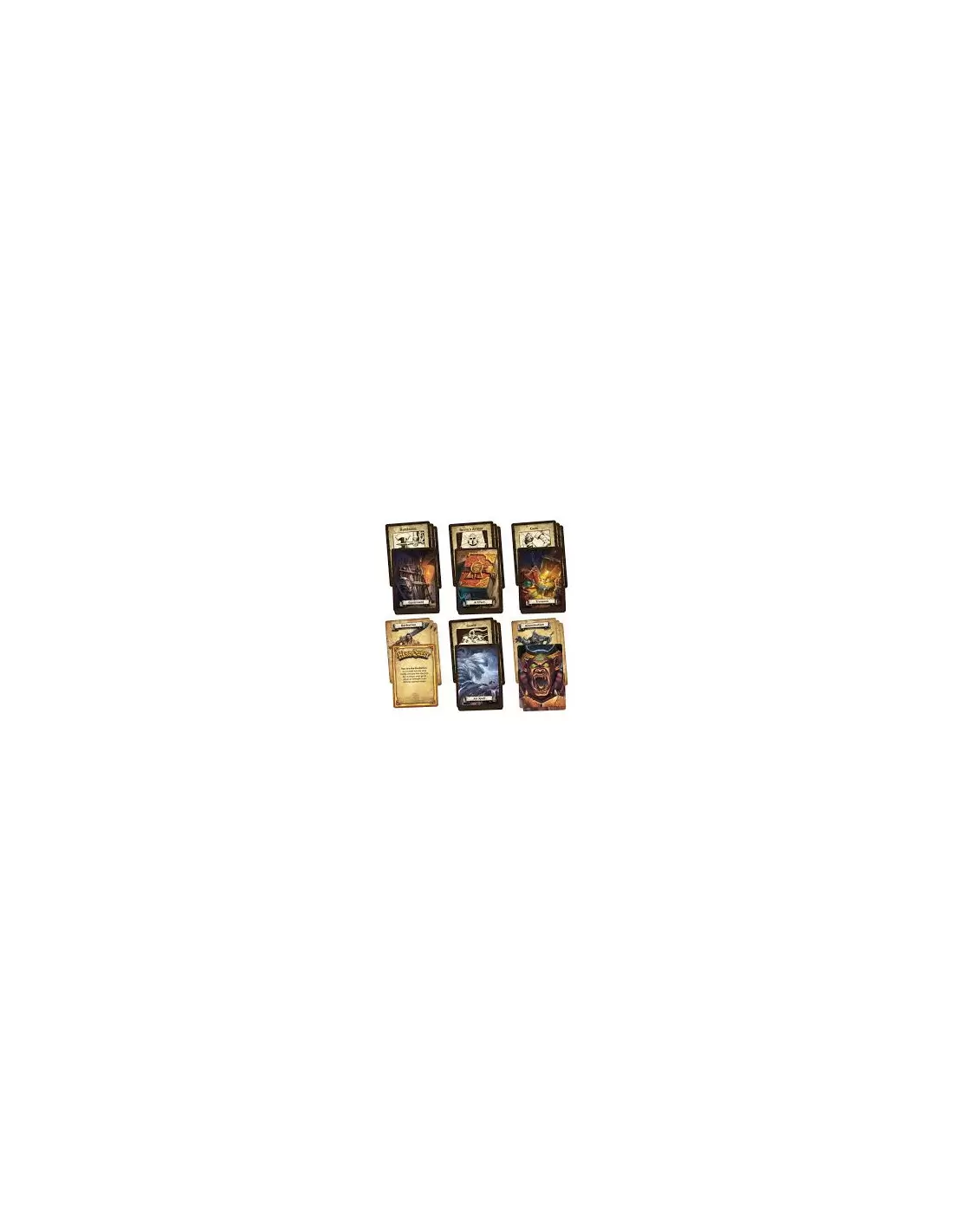 Libro de Misiones con 10 Misiones únicas, Reglas del Sistema de Juego, Tablero de juego de 2 caras, Pantalla del controlador de juego, 4 miniaturas de Héroes: el Bárbaro, el Enano, la Elfa y el Mago, 1 miniatura de Dragón, Bloc de hojas de personaje, 31 piezas de Monstruos, 15 piezas de Muebles, 41 fichas de cartón, 21 Puertas de Mazmorra, 102 Cartas de juego, 6 Dados de Combate, 2 Dados de Movimiento, 52 peanas de plástico