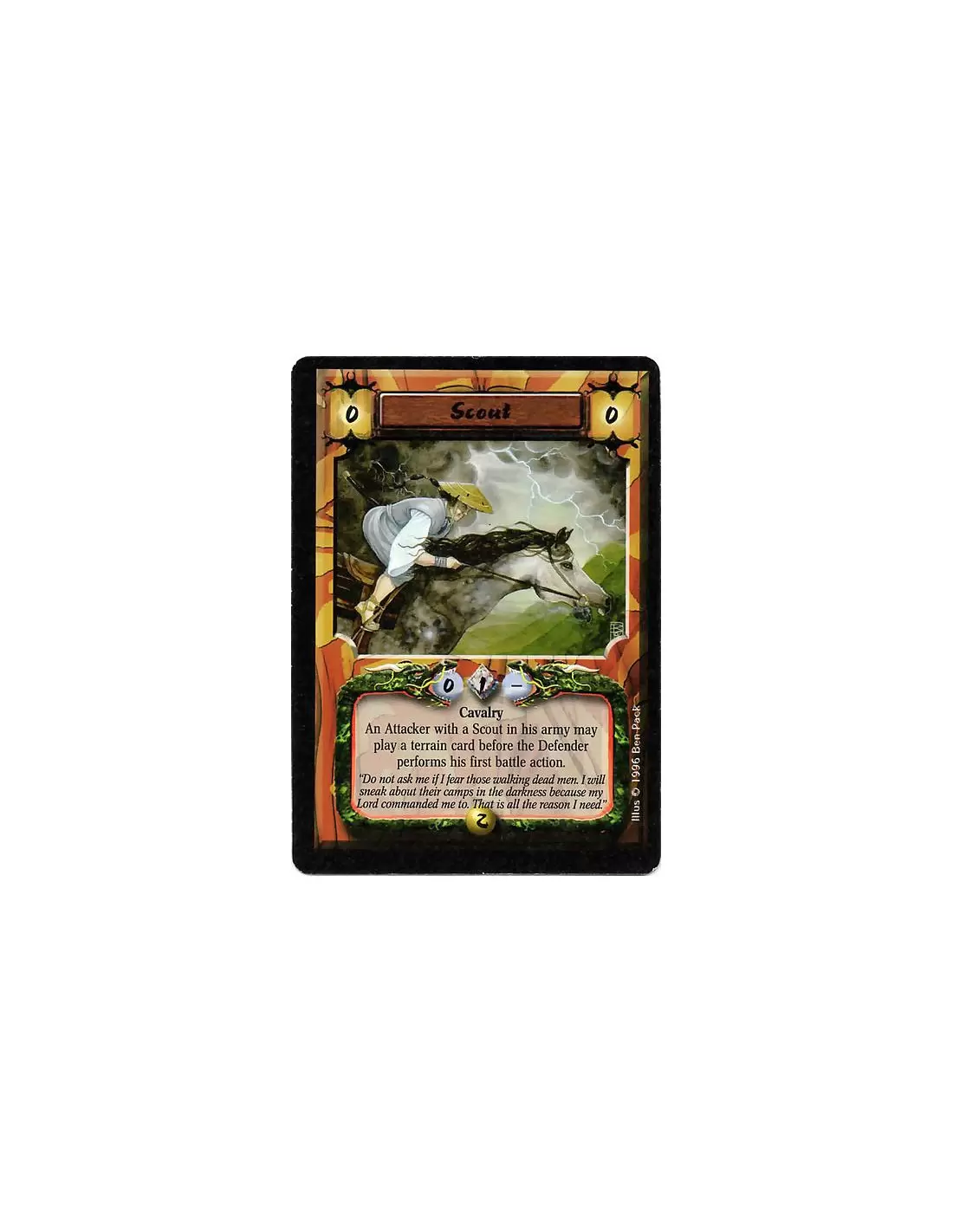 Scout  - Cavalry An Attacker with a Scout in his army may play a Terrain before the Defender's first action in battle.