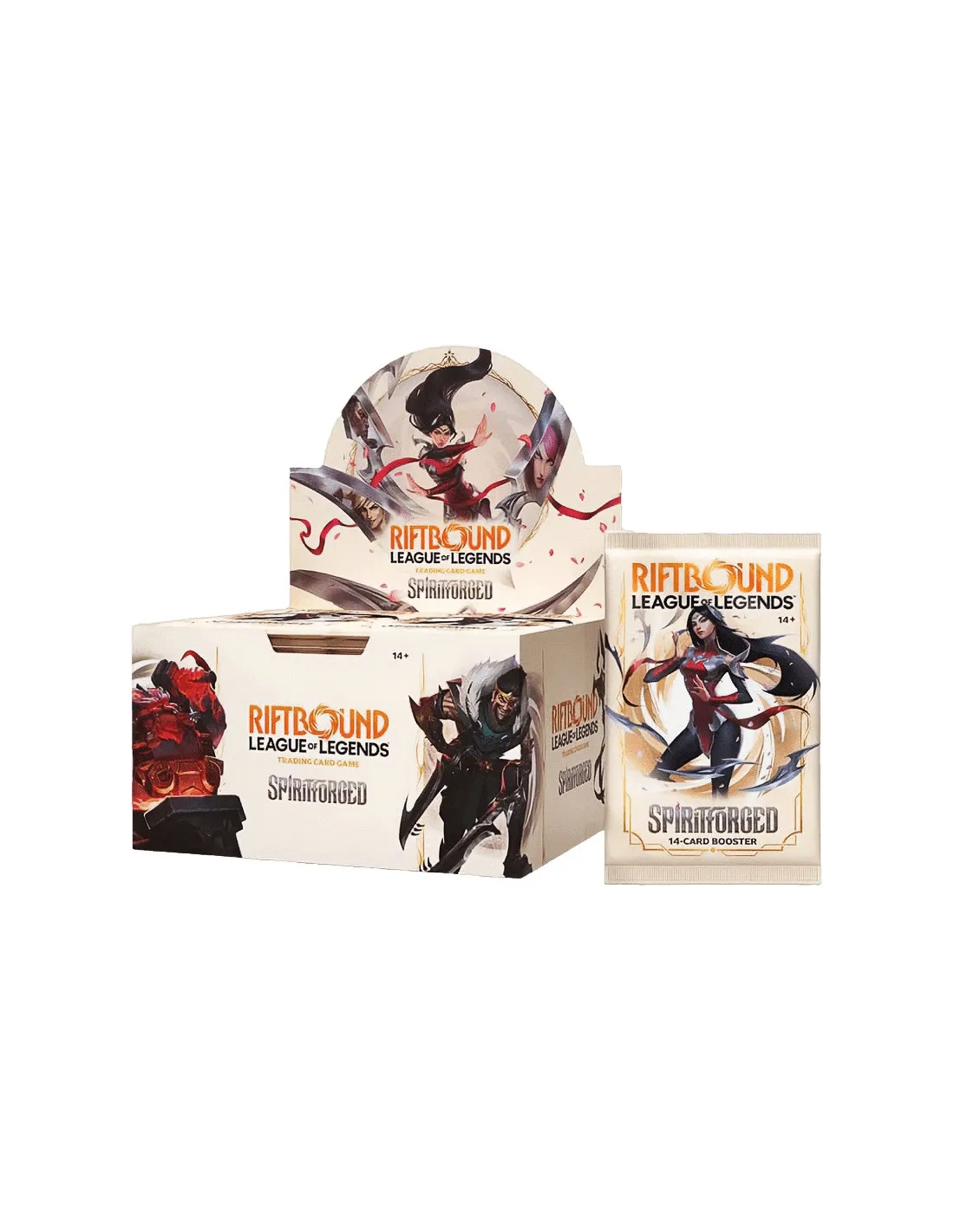 Spiritforged, la segunda colección de Riftbound: League of Legends JCC, ¡trae aún más campeones al campo de batalla! Estos sobres de 14 cartas se basan en un conjunto de más de 220 cartas con más de 60 personajes alternativos. Además, esta colección añade un nuevo toque a Riftbound con nuevas Leyendas, cartas poderosas y nuevas mecánicas.