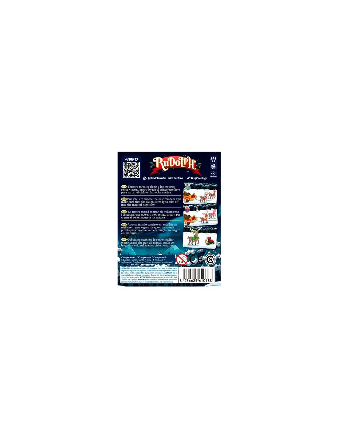 Rudolph es un juego de cartas en el que se acerca la noche más mágica del año y Papá Noel aún no ha decidido qué trineo utilizará para repartir los regalos. Cada jugador competirá por reunir el mejor equipo de renos: rápidos, fuertes y brillantes. Pero solo un trineo podrá levantar el vuelo y emprender el viaje más esperado de la Navidad.