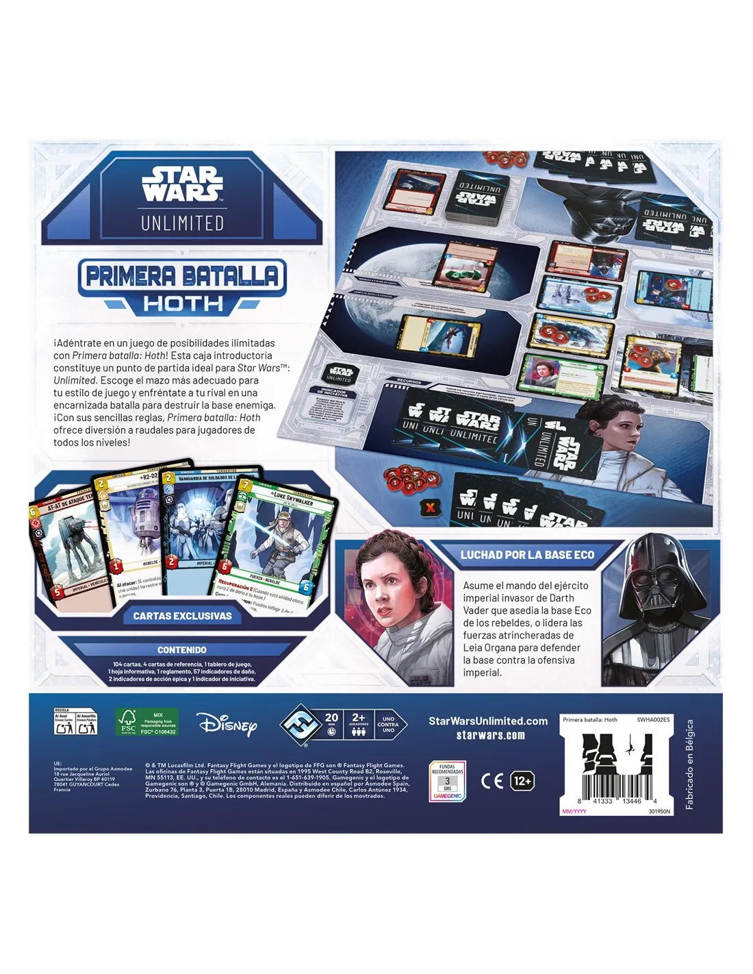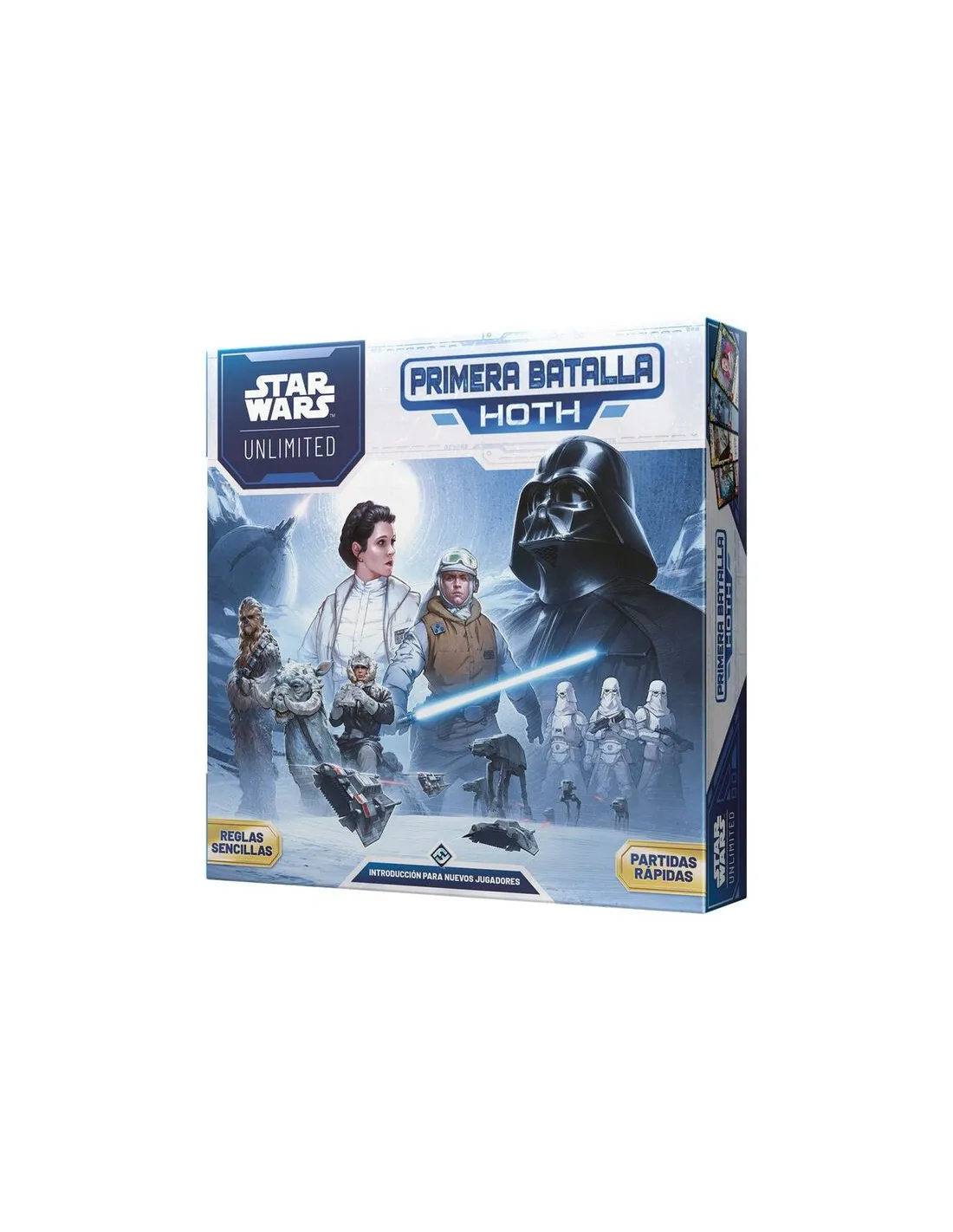 Esta caja introductoria constituye un punto de partida ideal para Star Wars: Unlimited. Escoge el mazo más adecuado para tu estilo de juego y enfréntate a tu rival en una encarnizada batalla para destruir la base enemiga. ¡Con sus sencillas reglas, Primera batalla: Hoth ofrece diversión a raudales para jugadores de todos los niveles!