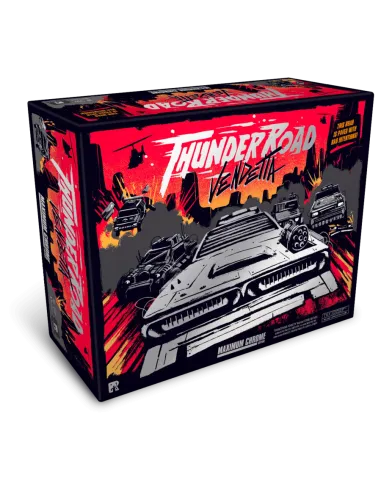 Thunder Road Vendetta: Maximum Chrome - Edicion Limitada es un juego de mesa que vuelve con una revitalizada restauración del clásico juego de 1986 de caos sobre el asfalto en una Edición Limitada llena de Cromo y nuevos componentes. Coge tu equipo, tira los dados, corre con tus coches, dispara tus armas e intenta que no te destrocen. ¡Disfruta con un juego totalmente revolucionado y recargado!