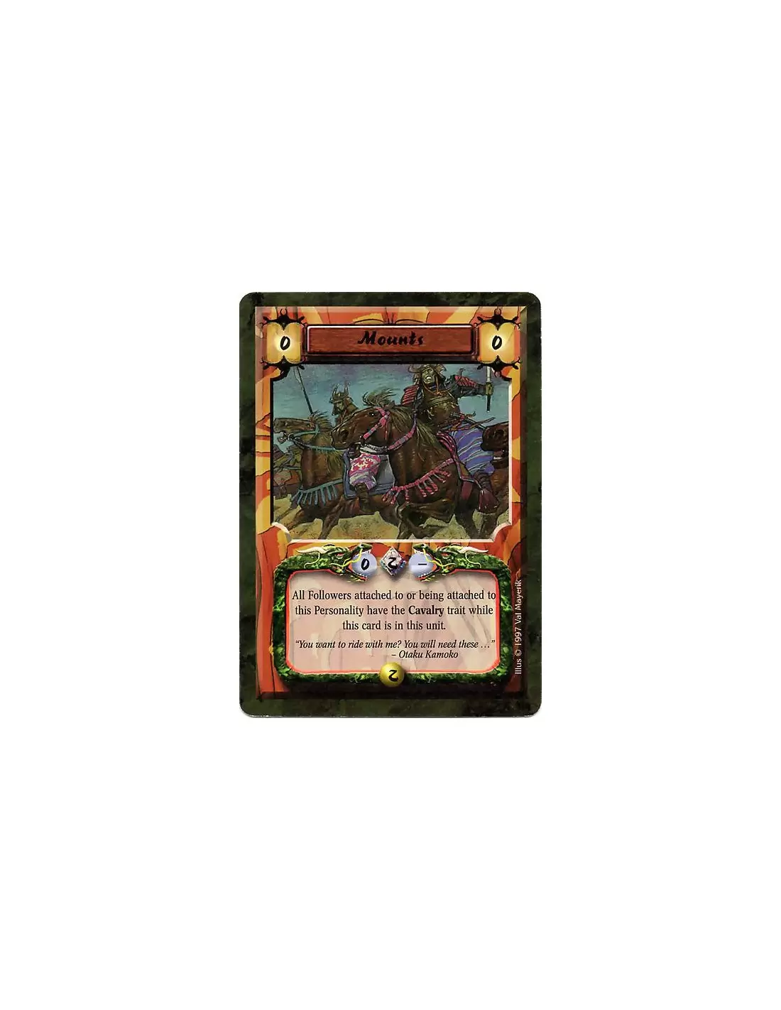 All Followers attached to or being attached to this Personality have the Cavalry trait while this card is in this unit. (Errata: Has the Creature and Cavalry traits.)