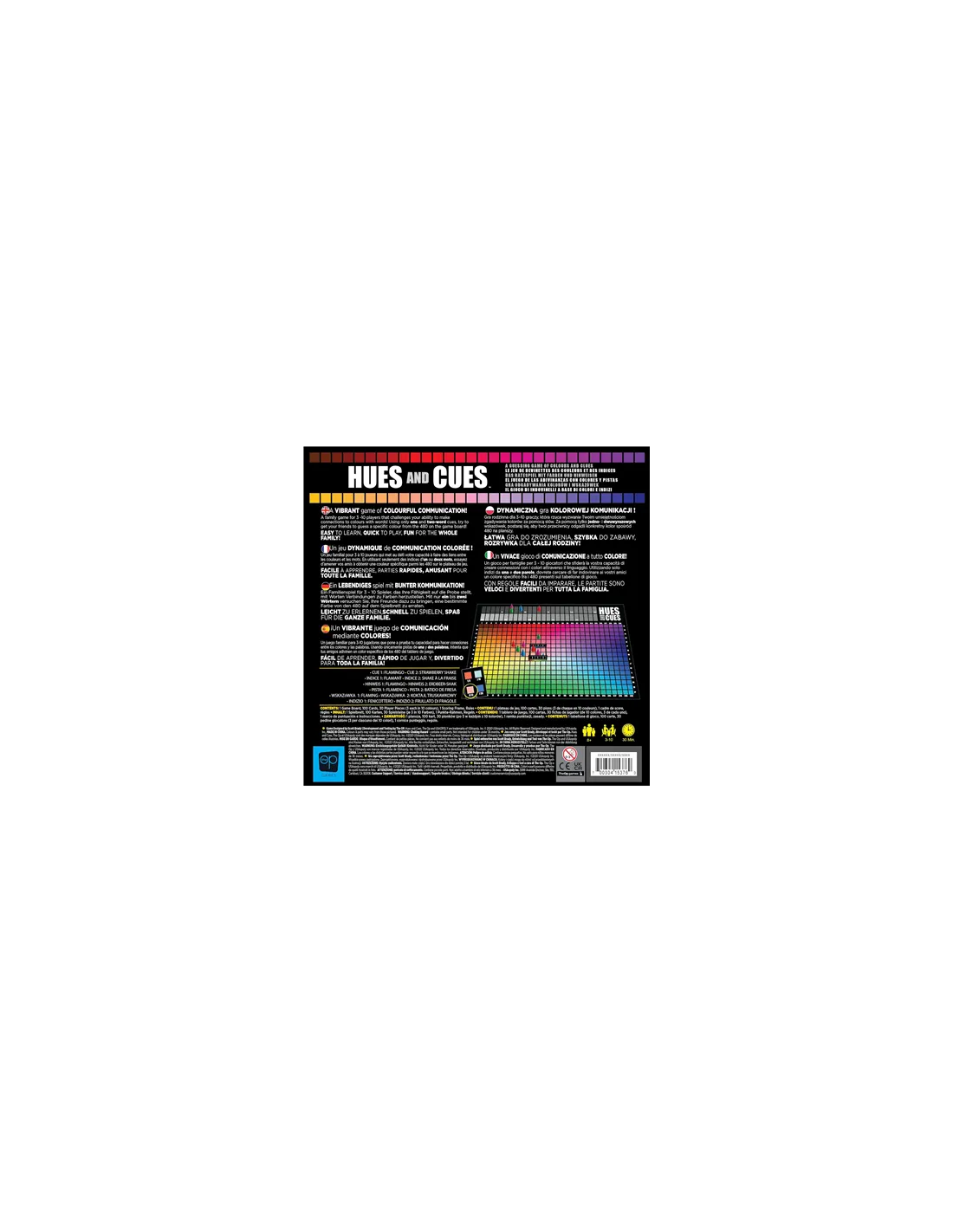 ¡Un VIBRANTE juego de COMUNICACIÓN mediante COLORES! Un juego familiar para 3-10 jugadores que pone a prueba tu capacidad para hacer conexiones entre los colores y las palabras. Usando únicamente pistas de una y dos palabras , intenta que tus amigos adivinen un color específico de los 480 del