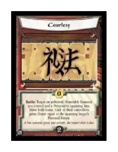 Battle: Target an unbowed Honorable Samurai you control and a Personality opposing him. Move both home. Each of their controllers gains Honor equal to the opposing target's Personal Honor