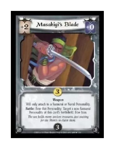 Weapon. Will only attach to a Samurai or Naval Personality. Battle: Bow this Personality: Target a non-Samurai Personality at this card's battlefield. Bow him.