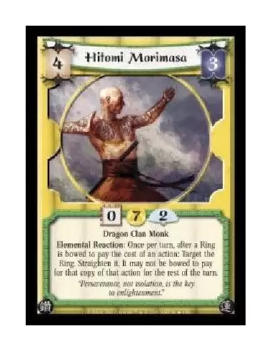 Dragon Clan Monk. Elemental Reaction: Once per turn, after a Ring is bowed to pay the cost of an action: Target the Ring. Straighten it. It may not be bowed to pay for that copy of that action for the rest of the turn.