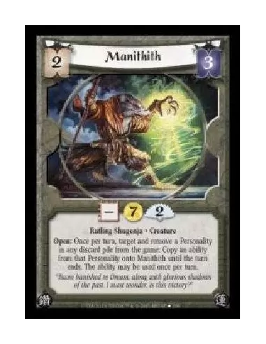 Ratling Shugenja · Creature. Open: Once per turn, target and remove a Personality in any discard pile from the game: Copy an ability from that Personality onto Manithith until the turn ends. The ability may be used once per turn.